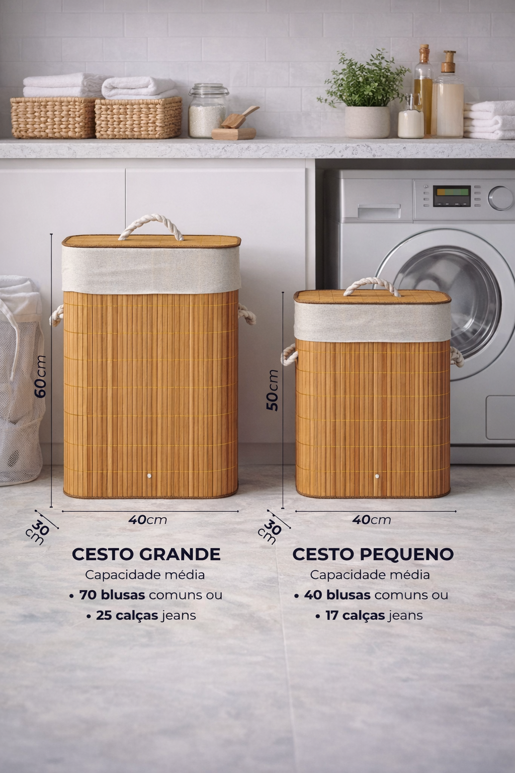 Transforme a organização da sua casa com um cesto de roupa funcional, elegante e sustentável. Produzido em bambu natural fumigado, ele une resistência, leveza e um design moderno que combina perfeitamente com banheiros, lavanderias e closets.
