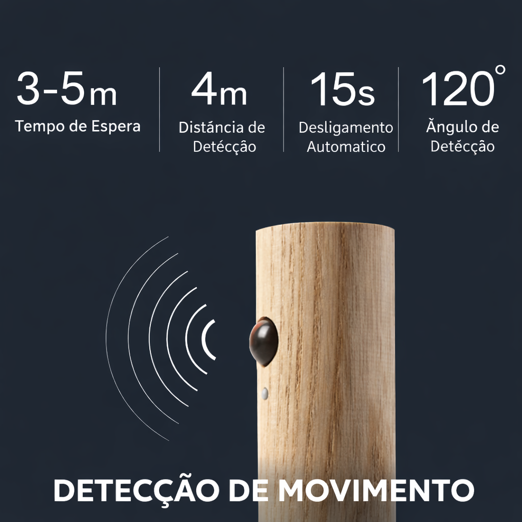 ✔ Em ambiente escuro, ao detectar movimento humano, a luz acende automaticamente por 15 segundos e depois desliga sozinha.