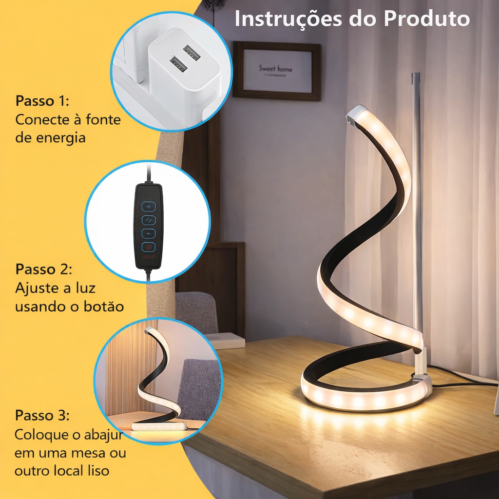 Transforme qualquer ambiente com a Luminária de Mesa LED 3 em 1, uma peça que une design moderno, funcionalidade e conforto visual. Ideal para cabeceiras, mesas de escritório, escrivaninhas ou ambientes decorativos, ela é perfeita para quem busca praticidade sem abrir mão da sofisticação.