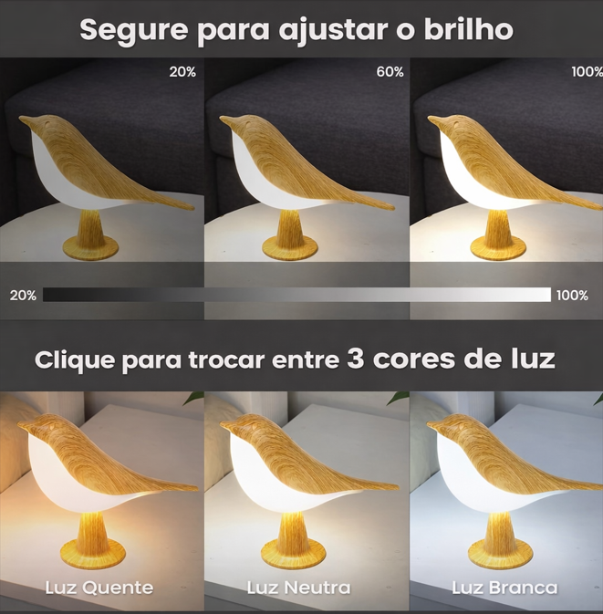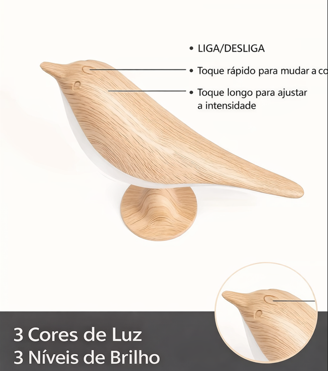 A Luminária de Mesa em formato de Pássaro é perfeita para quem busca uma iluminação suave, decorativa e moderna. Com design delicado em formato de pássaro, ela combina perfeitamente com quartos, criados-mudos, mesas de estudo, salas e ambientes infantis ou juvenis.