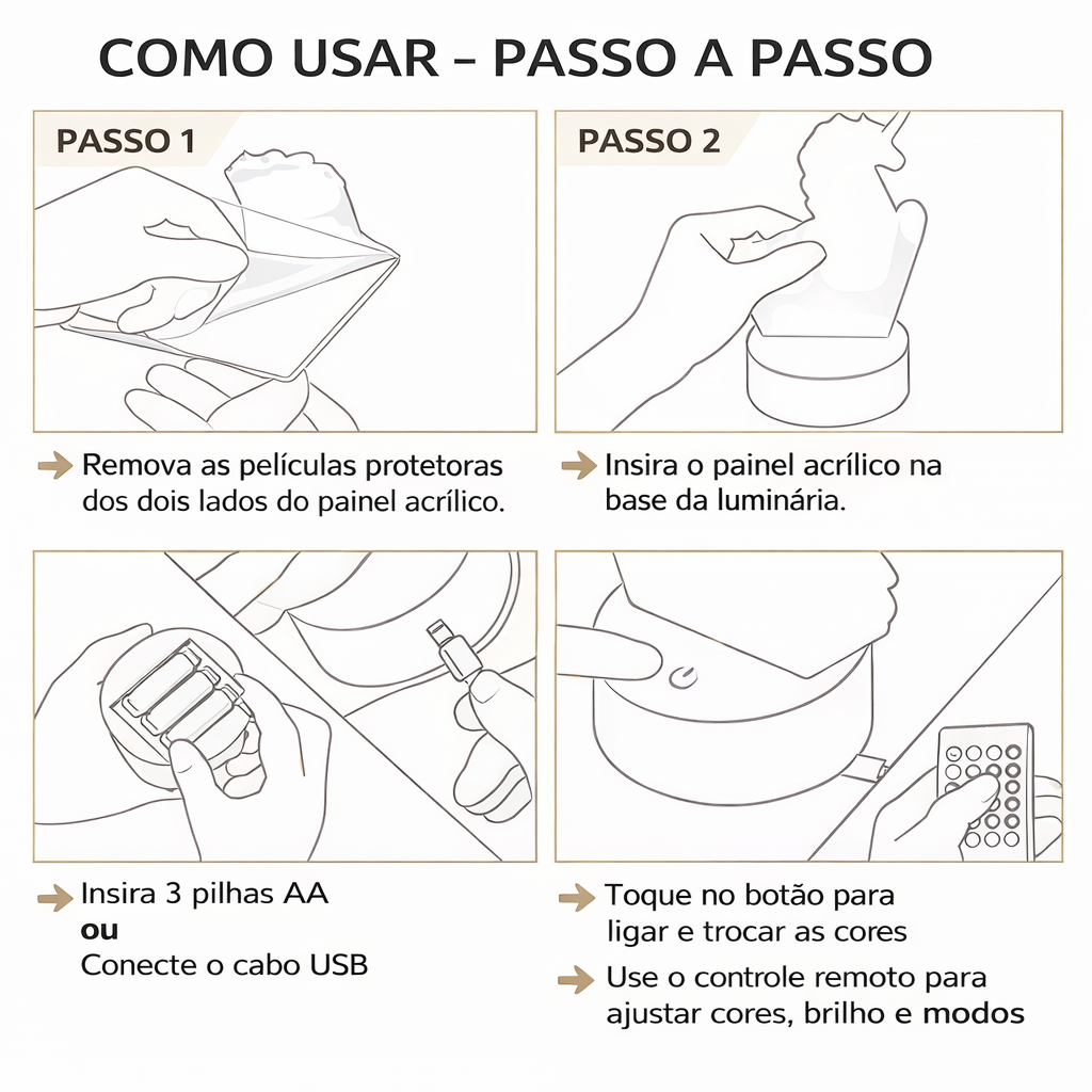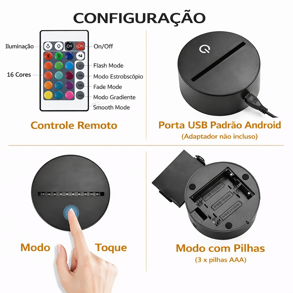 Transforme qualquer ambiente com a Luminária LED 3D, perfeita para quem busca decoração moderna, criativa e funcional. Com efeito visual em acrílico óptico e iluminação LED de alta qualidade, ela cria um impacto incrível no ambiente, seja em quartos, salas ou setups gamer.