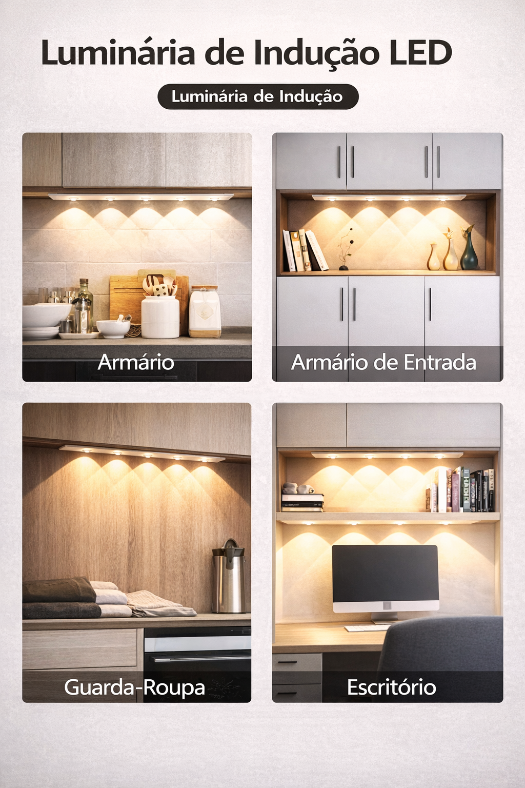 Ideal para armários, cozinhas, corredores, escadas, closets, banheiros e áreas internas, essa luminária une design moderno, fácil instalação e alta eficiência luminosa.