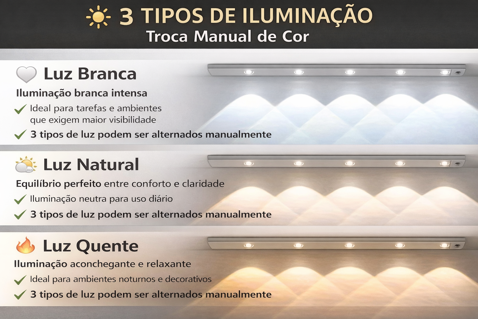 • Cores de Luz: Branco Frio / Branco Quente / Branco Neutro